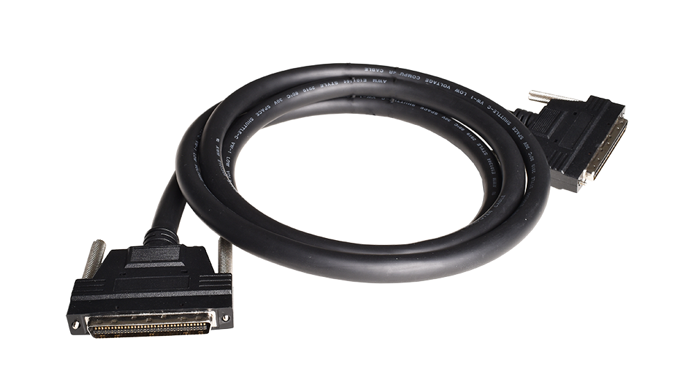 6 ft/1.82 m shielded and twisted high-voltage round cable featuring a 68-pin male MDR connector to a 68-pin male MDR connector, made for voltages up to 150V. |