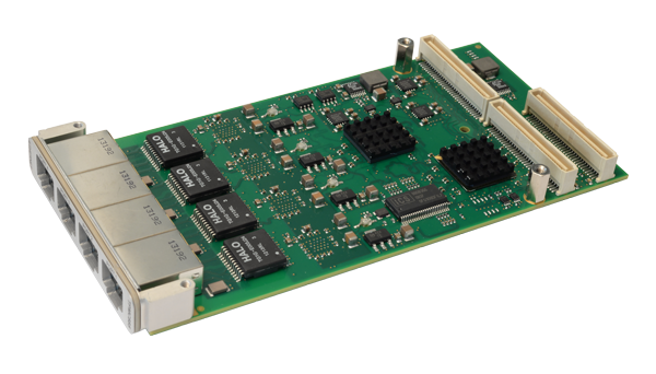 The IO713 I/O module provides a four-channel 10BASE-T/100BASE-TX/1000BASE-T Ethernet interface. Simulink driver blocks are also provided.