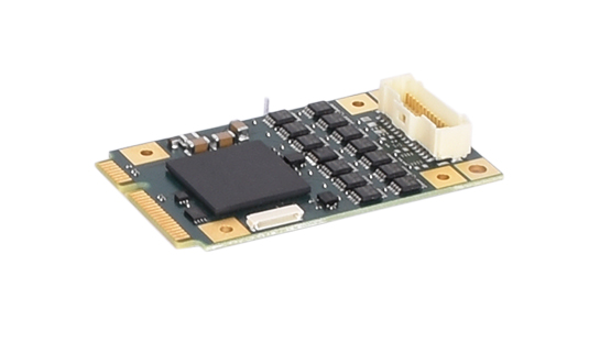 The IO394 I/O module is a mPCIe-compatible, configurable I/O module with 50k logic cells, 13 differential, ESD-protected M-LVDS I/O lines and a AMD® Artix®-7 chip. All the I/O lines are individually programmable as input or output.