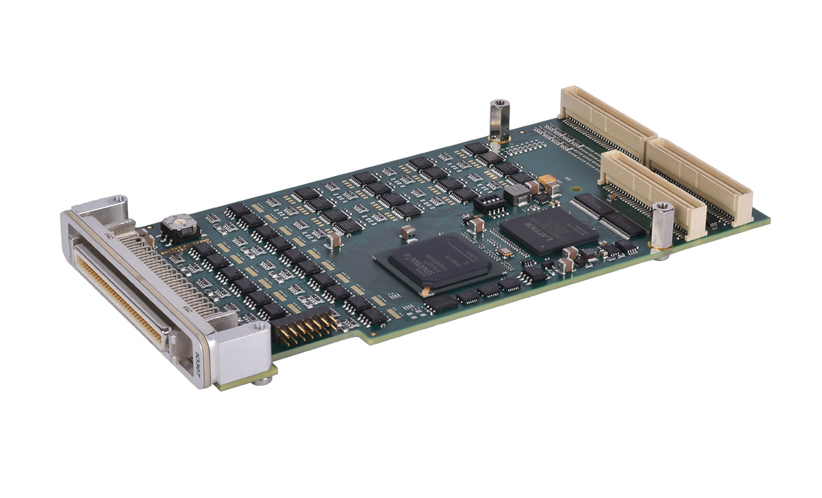 The IO307 I/O module is a flexible, cost-effective and configurable Spartan®-6 FPGA providing 25k logic cells. This I/O module features 32 TTL and 16 differential lines which can be individually programmed as inputs or outputs. Each TTL I/O line also has a pull resistor and the standard pull voltage level is fixed at +3.3 V. The differential I/O lines are terminated by 120 Ω resistors.