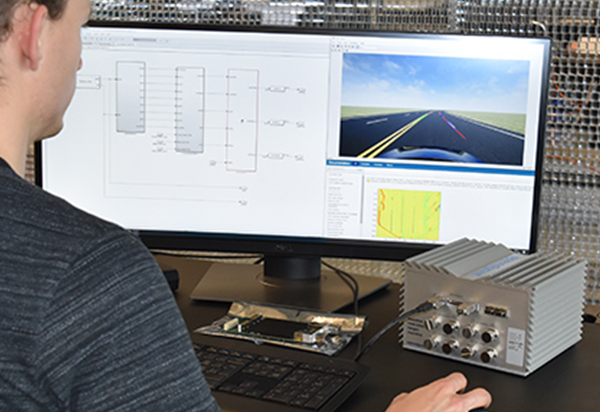 Save time and ensure that all the electronic control units’ (ECUs) functionality, safety and certification requirements are met by running Rapid Control Prototyping (RCP) or Hardware-in-the-Loop (HIL) simulations on a Speedgoat real-time target machine. Conveniently explore various perception, planning, control algorithms directly on a vehicle digital twin and design reliable safety-related automation systems in a real-time setting.